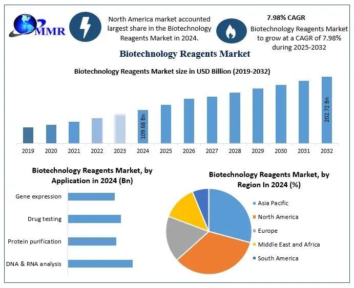 The Biotechnology Reagents Market size was valued at USD 109.68 Billion in 2024 and the total Biotechnology Reagents revenue is expected to grow at a CAGR of 7.98% from 2025 to 2032, reaching nearly USD 202.72 Billion.