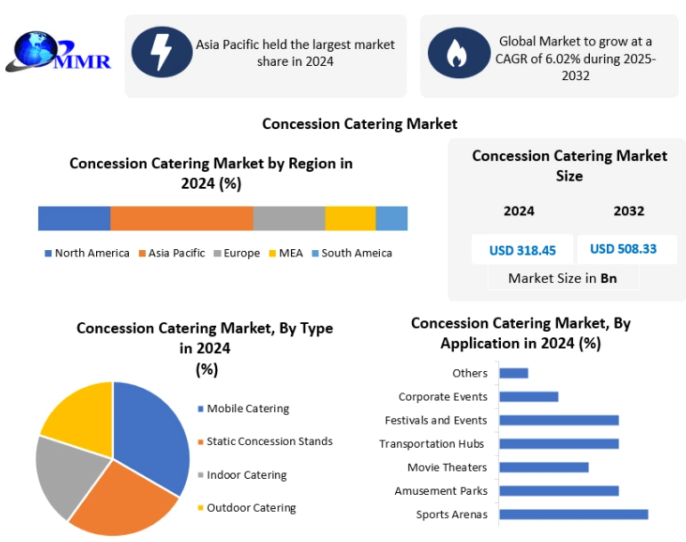 The Global Concession Catering Market was valued at USD 318.45 billion in 2024 and is projected to reach USD 508.33 billion by 2032, growing at a CAGR of 6.02% during the forecast period (2025–2032).
