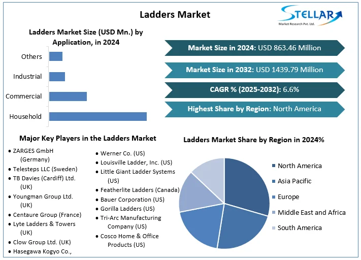 The global ladders market is experiencing steady growth, driven by increasing demand across residential, commercial, and industrial sectors. Projections indicate a robust expansion from an estimated USD 863.46 million in 2024 to approximately USD 1.44 billion by 2032, reflecting a compound annual growth rate (CAGR) of 6.6% during the forecast period